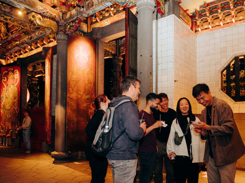 Dive into the rich fabric of Taiwanese culture and history. Discover how our ancestors thrived in Taiwan and how they treated illnesses without doctors. Looking for a bit of extra luck? Longshan Temple, filled with colorful dragons, is home to over 100 folk gods who oversee everything from the sea to battles. Share your wishes with gods like Wenchang Dijun, known for helping with learning, and the Old Man Under the Moon, who brings couples together. Our guide will show you how to throw 'moonstones' and interpret messages from the heavens. Get your fortune read and learn about the temple's long history and the traditions of Buddhism and Taoism that have made it a beloved place for centuries.